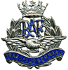Royal Australian Air Force cap badge in blackened copper, excellent condition. Manufacturer's mark visible (AMOR SYDNEY). Original lugs present. 46mm x 40mm. Item # Avi-317 (68) |
