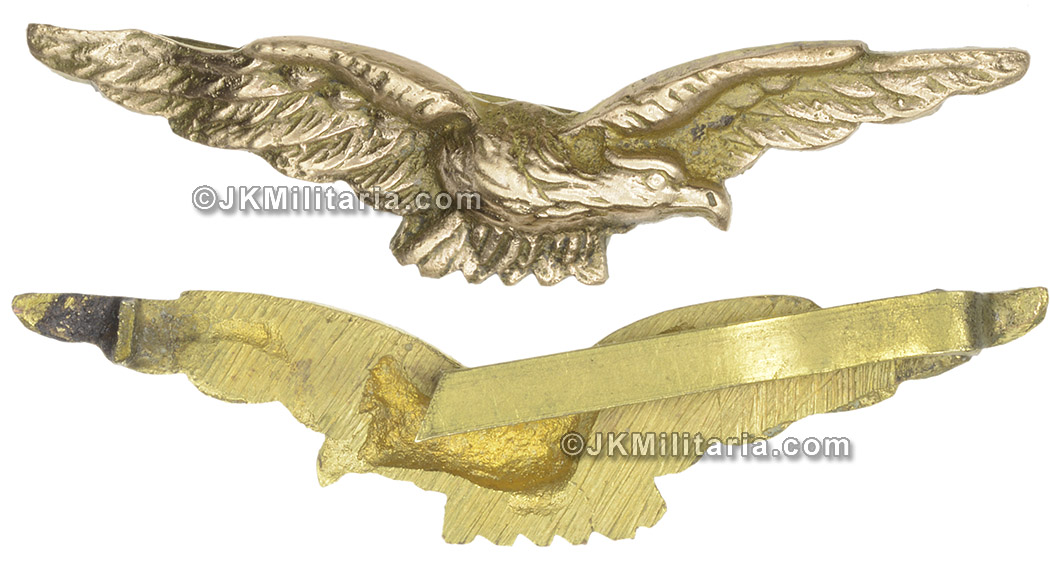 RCAF cap eagle. Typical 1940s-53 quality, stamped (pressed) in brass and gilded. Massive post, no fasteners. Item # Avi-334 (15) |