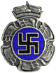 Bulgarian pre WW2 flyer/sport pilot badge. In reality, these were also used as the honorary pilot and often given to German Luftwaffe officers before and during the War. Vaulted badge of graceful design. Royal cypher of Boris III with eagle 'flying' through it. Crown atop. 61mm x 27mm. Light gilt finish. Unmarked. Initials S.H (or SN) deeply engraved on reverse. Pin/catch assembly intact. Nice badge. Item # Avi-252 *SOLD* |