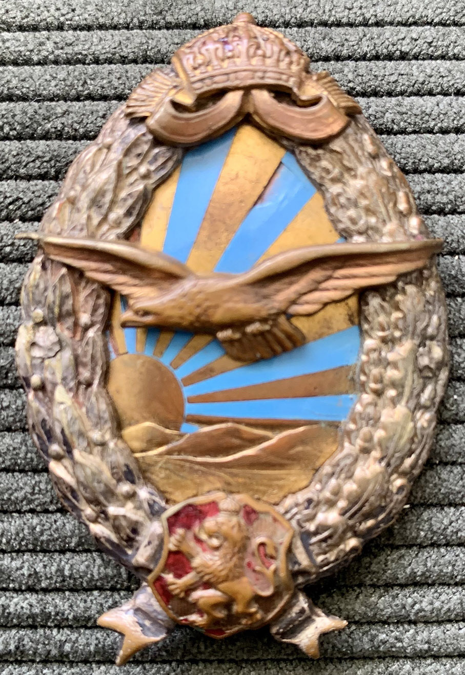 NEW! Bulgarian Air Force Pilot badge, 1935-36 pattern. German made example, possibly by Friedrich Sedlatzek. Missing nut fastener. Shows wear and age, some enamel damage. Item # Avi-349. 350. Consignment |