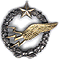 Qualification/trade badge for Air Force fitter. Good quality, cut-out type. Wings lightly curved. Unmarked original. Fastening assembly intact. 78.5mm x 16.8mm. Item # Avi-298 (42) |