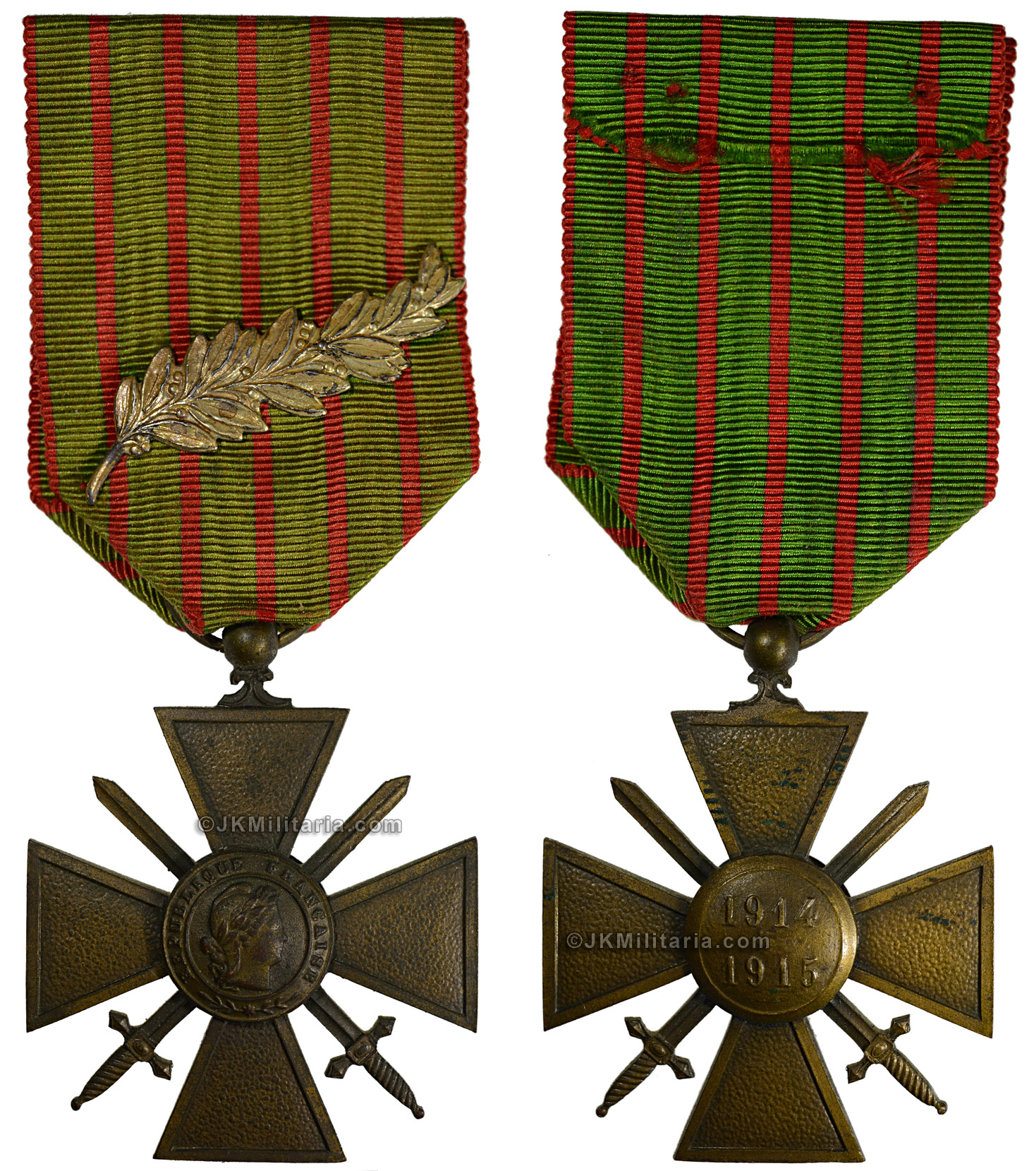 War Cross, WW1. 1914-1915; type G. Complete with original ribbon and palm device. Bronze, fine quality. 38mm wide. Item #Fra-286 (48) |