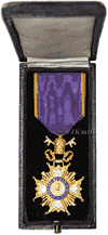 Avvocati Di San Pietro Decoration, also known as Advocates of Saint Peter. This organization was founded in 1877 as a judical body dedicated to defense of the Holy See. Society's members were mostly jurists along with honorary members (distinguished ecclesiastics and also laymen) who have made it a practice to defend Church interests around the World. It's members were known to exist in several countries all over the World. Some time before 1900 it was considered as a semi-chivlalric Order with support from the Vatican. There is little reference (that we have) pertaining to Order's insignia. It is certain however, that there were at least 2 classes: neck badge and breast badge. The former is extremely rare. Breast badges are fairly rare. Example offered here is in bronze gilt, probably of Italian manufacture. Original ribbon of purple and yellow edge stripes. Scarce case of issue (original) with gilt Papal arms (in metal - not embossing). Very attractive design, multi part construction. Reverse inscribed: "Tu Es Christus Filius Dei Vivi". Excellent opportunity to add to your Paypal/religious Order/decoration collection. Item # Vat-46 *SOLD* |